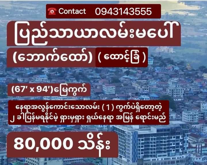 | Feature | #ဘောက်ထော် #ပြည်သာယာလမ်းမပေါ် ရှိ ( ထောင့်ကွက် ) အချက်အချာကျ၍ နေရာအလွန်ကောင်းသော ရှားပါး (1) ကွက်ပဲရှိတော့တဲ့ ရှားမှရှား ရှယ်နေရာ အမြန် ရောင်းမည် တည်နေရာ - ပြည်သာယာလမ်းမပေါ် #ရန်ကင်းမြို့နယ်။ အကျယ်အဝန်း - (67 x 94), ( 0.144 ) ဧက ပိုင်ဆိုင်မှု - နှစ် ( ၆၀ ) ဂရန်မြေ ၊ အားသာချက်က ( ထောင့်ကွက် ) ဖြစ်တာကြောင့် မျက်နှာပွင့် (၂) ဖက်သုံးလို့ရသော ရှယ်နေရာကောင်း၊ အမျိုးအစား - အိမ်ဟောင်း ဈေးနှုန်း - သိန်း (80,000 ) For viewing the house: 0943143555 (အိမ်ကြည့်ရန်ဆက်သွယ်ရန်ဖုန်း) #ပိုင်ရှင်နှင့်တိုက်ရိုက်စျေးညှိနှိုင်းနိုင်ပါသည် လူကြီးမင်းတို့အိမ်ခြံမြေ၊လုံးချင်း၊ကွန်ဒိုအခန်းများ၊စက်မှုဇုံမြေတို့အား (ရောင်း၊ဝယ်၊ငှား)လိုပါက Anywhere Property Company သို့ယုံကြည်စိတ်ချစွာဆက်သွယ်အပ်နှံနိုင်ပါသည်။ (ပိုင်ရှင်များတိုက်ရိုက်ဆက်သွယ်အပ်နှံနိုင်ပါသည်) Page မှာမတင်ထားတဲ့အခြားသော data များစွာရှိတဲ့အတွက်လူကြီးမင်းတို့သုံးချင်တဲ့budgetအတွင်းဝင်အောင်စိတ်တိုင်းကျသည်အထိရှာပေးပါသည်) -အတွေ့အကြုံရှိအိမ်ခြံမြေရှေ့နေများဖြင့်အရောင်းအဝယ်စအလယ်အဆုံးတိကျမှန်ကန်စွာစာချုပ်ချုပ်ဆိုပေးပါသည်။ www.anywhereproperty.com.mm Email: anywheremyanmarproperty@gmail.com #land#လုံးချင်းအိမ် #houseforsale#goldenvalley#inya#inyamyaing#thanlwinroad#pyayroad#yankin#northdagon#hlaing#bahan#everyone#realestate#property#anywhereproperty 0943143555 095035530 |
