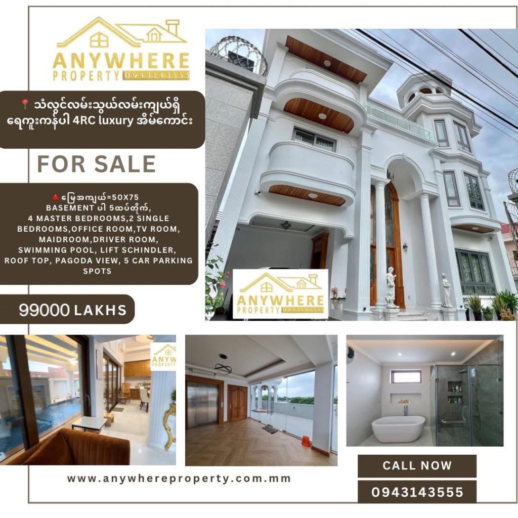 | Feature | ရွှေတောင်ကြား(၁) ၊ ဗဟန်း မြို့နယ် ▫️52x75 (3,750 Sqf), 4 RC ,Swimming pool, 5 master bedrooms, lift Schindler, roof top, shwedagon pagoda view, 5 car parking spots ▫️ဘိုးဘွားပိုင်အမည်ပေါက် |